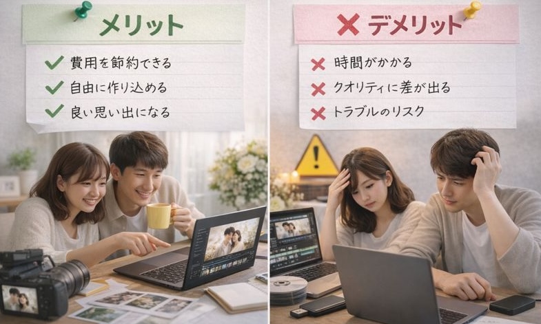 この記事では、それぞれの費用相場と、メリット・デメリットを詳しく解説します。おふたりの予算やスキルに合わせて、最適な方法を選びましょう。